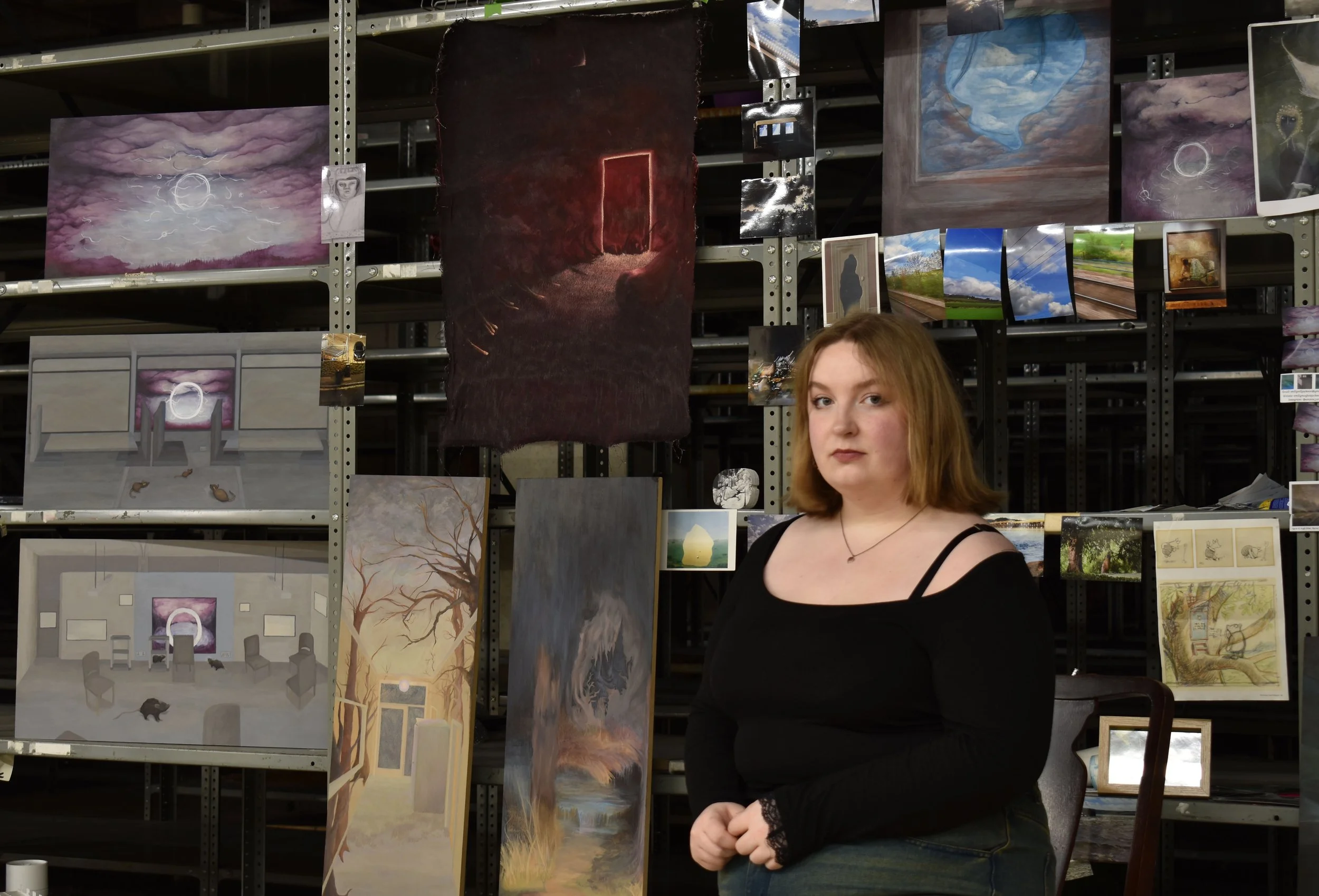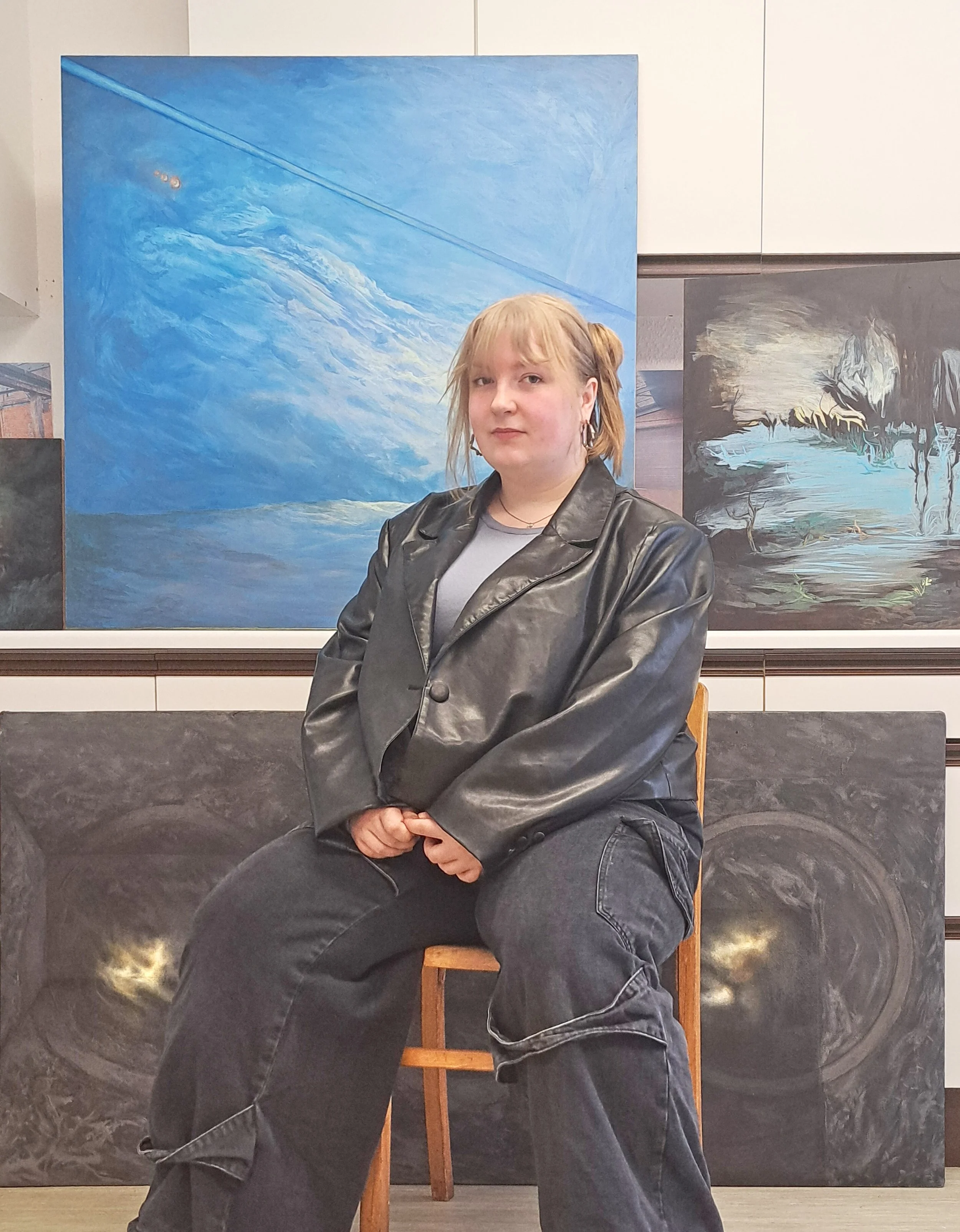 (b.2004) Emily studied a BA (Hons) for Fine Art: Painting, at Camberwell College of Arts (UAL). She was the winner of the Big Walls and Windows Project in 2023 and was shortlisted for Barbican Arts Group Trust Open and the Scottish Portrait Awards. She has showcased her work both in London and across Scotland, with her first Solo Show ‘Thinking Space’, being held in Dundee in 2024. In 2025 she went on residency with Generator Projects (Dundee) in Zakynthos, Greece and she is currently based at OuterSpaces Dundee.